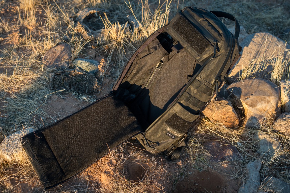 Lifting the hook and loop flap and unzipping each side of the the bag allows the front panel to be completely opened up. There are a series of rec rings around the perimeter to accept accessories and two vertical dump pockets on each wall that are best accessed from the top opening. The inside of the flap is fleece lined and will accept hook backed accessories.