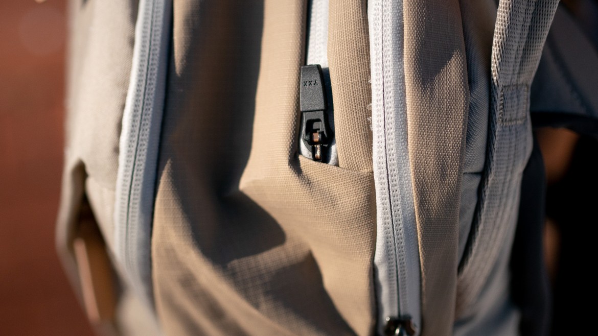 Both of these compartments take up space in the main volume of the pack and will hold small accessories with ease. When it comes to water bottles they will only accommodate bottles that run on the smaller side. We tested with a very common 24oz Hydroflask and it was an uncomfortably tight fight. YMMV with other brands but in general you may have better luck with 20oz or smaller bottles. The recessed zipper compartments – while providing excellent cover from rain and also being effectively invisible from the outside – also feel like they limit the size of items that can be put in here. Other bags in this market segment will run with stretch pockets on the outside or zippers that wrap around the compartment to provide a larger access. Bellroy’s design choice here is very sleek but may have come at the cost of limiting it’s usefulness for larger water bottles.