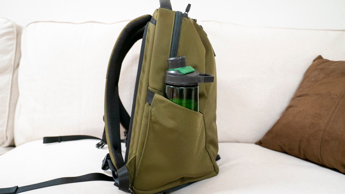 With that simple breakdown out of the way, lets get into the meat. Working from the outside in, we have two exterior water bottle pockets. They are a decent size, and can accommodate a few different sizes of water bottle.