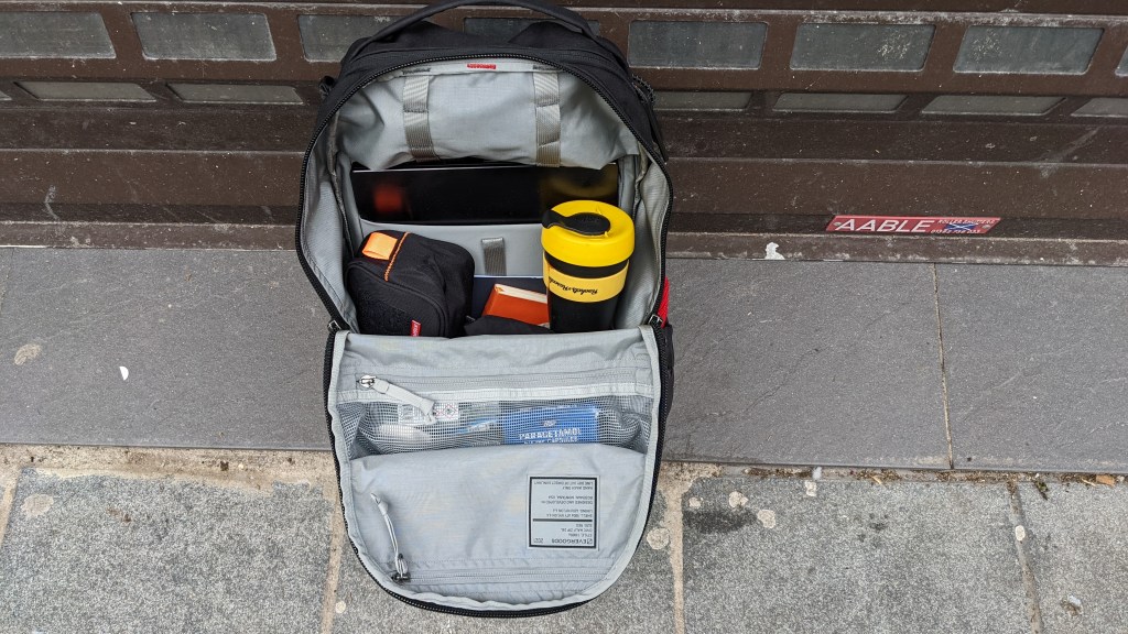 I found the half-zip totally usable at work, giving great access when I was opening it up next to my desk, but never more so than it would have been with a fully-opening zip front – in fact maybe less so, as I found when trying to dig my lunch out of my pack while it’s hanging in my locker. I did find, when travelling, the narrower opening to be a slight obstruction for bulky gear – it was definitely harder to load in my packing cube full of clothing than it would have been in, say, Evergoods own CPL24.