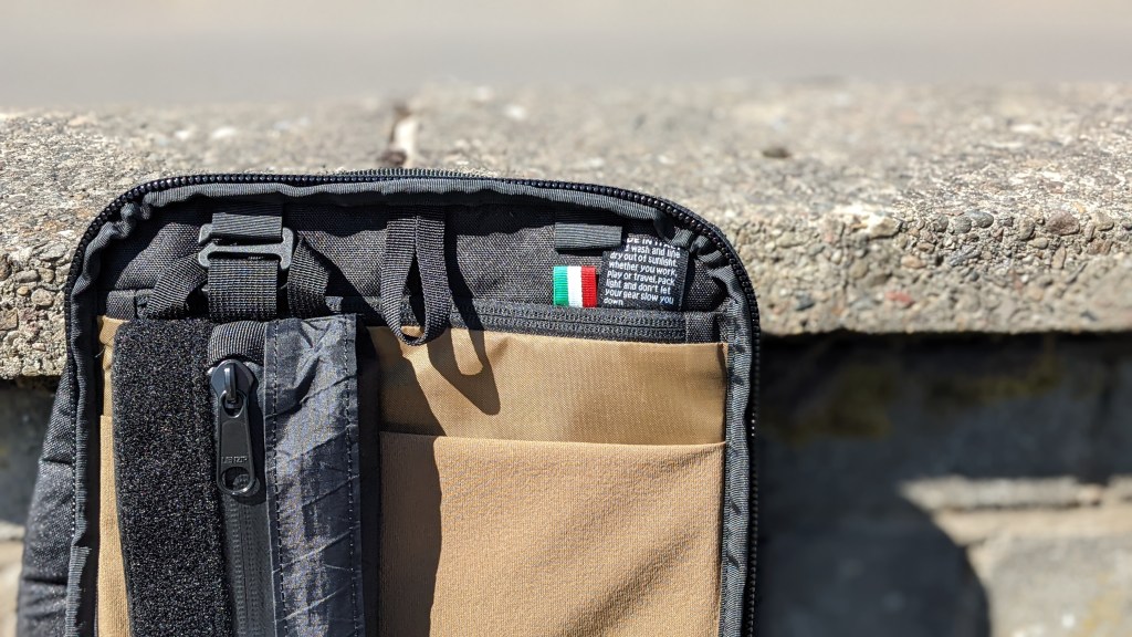 Being manufactured in Italy, the build quality on my ATD2 is through the roof, being immaculately stitched. The pattern of the bag is deceptively complex, holding its shape whether compressed or packed out, and generally looking gorgeous no matter what. The 600d fabric has just the right amount of structure, and a slightly coarse finish that feels tough without looking rugged. Being a Challenge Ecopak fabric, the technical properties are top-notch, offering excellent durability and water resistance as well.