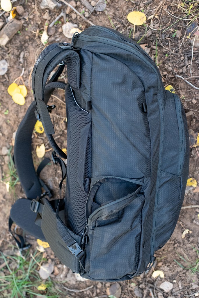 The face of the pack is relatively clean and hosts a large accessory pocket that is sized well for something like a tablet. This pocket features some interior organization options. For a travel bag, I appreciate that the pockets are all zippered to ensure the contents are secure and safe. Each pocket also has its own built in volume, so they are not robbing space from the main compartment. Beyond the way the pockets are built, they are useful in a travel scenario, allowing the user to access smaller items on the go.