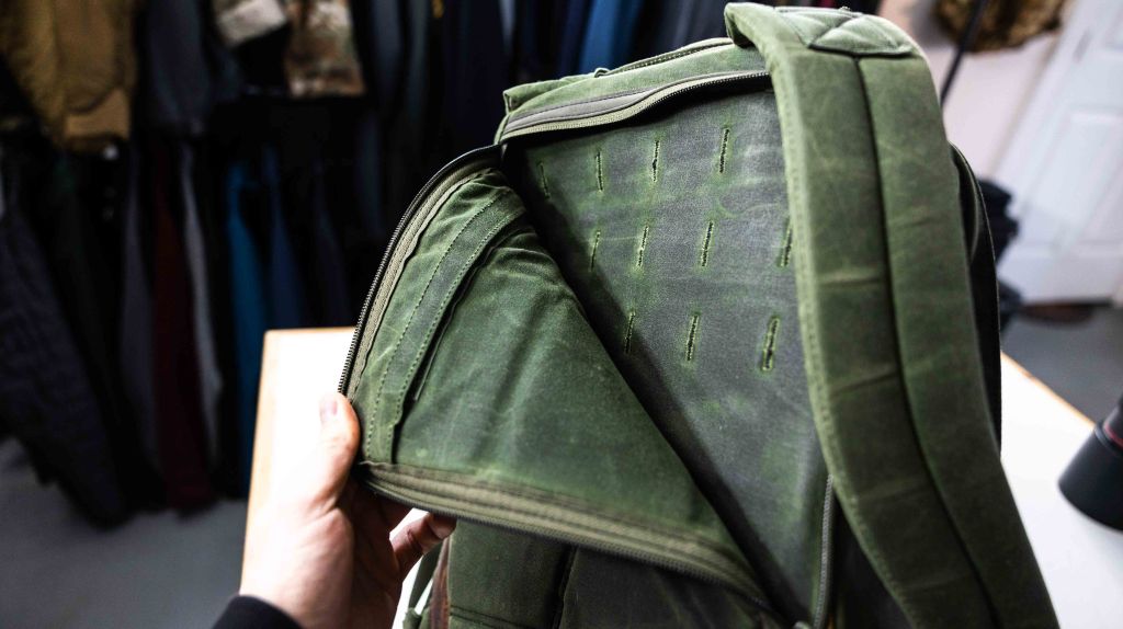 The first thing anyone will notice about the GR1 Heritage is that it is primarily constructed in canvas material instead of traditional Cordura. But this is no ordinary canvas you see, it’s ducked! Ducked Canvas is a canvas where the duck cloth has been infused with wax, Martexin Wax to be specific. The result is a very smooth look and feel that makes it very tough and rain resistant. One of the great things about this is that over time the canvas will become aged in a unique way to how you treat it. This weathered and worn look is something that will only make the bag more beautiful as time wears on. And, since this bag has a lifetime guarantee, like all GORUCK packs, that should be a long time – especially with regular maintenance and rewaxing. To put this into perspective, GORUCK states the pack should last north of 170 years.