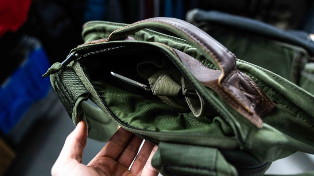 When it comes to the organization the Heritage has a few more tricks up its sleeve over the standard GR1. Starting off there is a small hidden zipper pocket underneath the handle. This tiny addition makes a world of difference to me as having a small quick-access pocket for high-use items greatly increases the functionality and usability of the bag. I would usually throw my headphones and chapstick in this pocket but not much else as it is very small. On the exterior, there is a 2″x3″ patch panel on the front with a removable leather patch included.